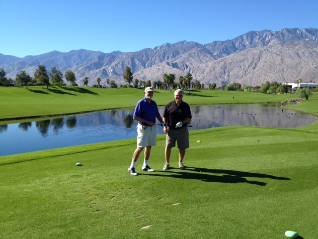 And so it was. There is no way to describe golf Sunday but a total massacre. And since we played a golf game, which is appropriately called “skins game”, he left parts of my skin everywhere on the course. They will find me buried in sand traps, hanging from the scrub oak, under replaced divot holes, and probably being used as camouflage by the local rattlers. To add insult to injury we are playing a course named Cathedral Canyon in Cathedral City. I am glad we are not playing any courses named Tombstone. So, it is 5 am and we will be off and running soon. Catch you later if I have any dignity left.
