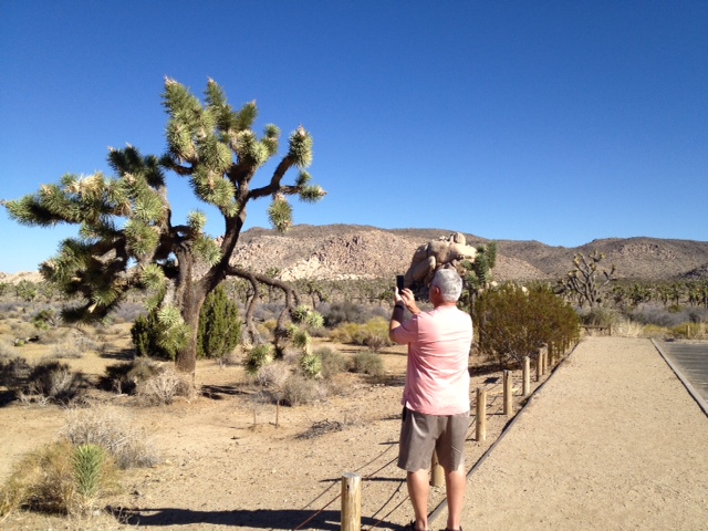 Our second game was played at a course that wound through a huge development called Cathedral City. We had to travel miles of roads between holes, following little signs. It took a lot of guesswork. And the scores weren’t too good. In fact, Bill stopped keeping score, and I had a 112 in that second game. (I had a 102 in the first game, but we were given a really nice free lunch there.) I had to pay him $4, but he picked up the $5 tip. Hmmm. I guess that means I paid most of the tip, but he also tipped the ball boy. This morning we’re off to Joshua Tree National Park and then, you guessed it, more golf in the afternoon.